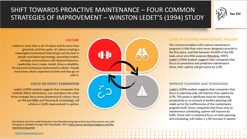In 1991, Winston Ledet and his team from DuPont, studied 15 of America’s most prestigious manufacturing plants and dozens of their own plants. They found that DuPont spent 10-30% more, per $ of plant value, on maintenance compared to the industry leaders and uptime was 15% lower. Ledet continued this study over several years to include 140 more plants across Europe and Japan.