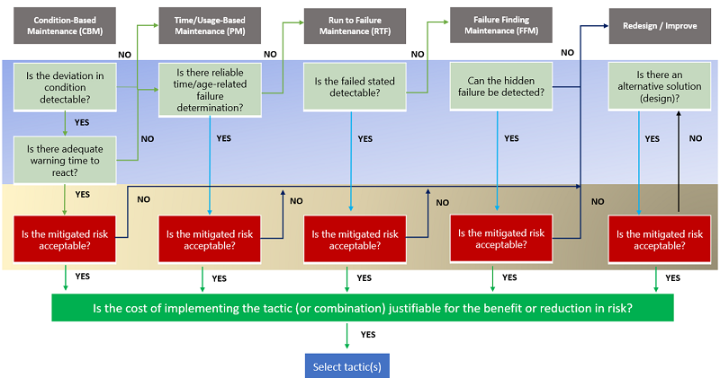 Defining and Selecting Asset Tactics - appropriate methodology for developing the tactics is a decision to be made by or dictated by the site’s asset management policy. We already mentioned the various methodologies that can be applied i.e., RCM., FMEA, reverse RCM (also known as PMO). An overview of the selection logic is shown in Figure 3.