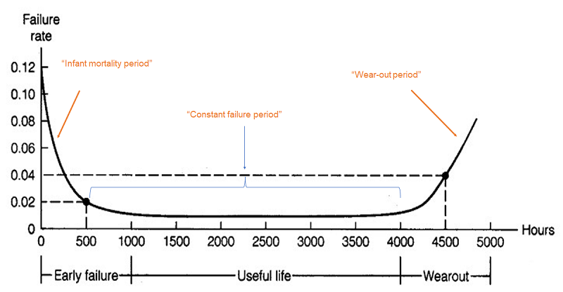 An example of a failure rate curve (“bathtub”) curve is shown in Figure 1
